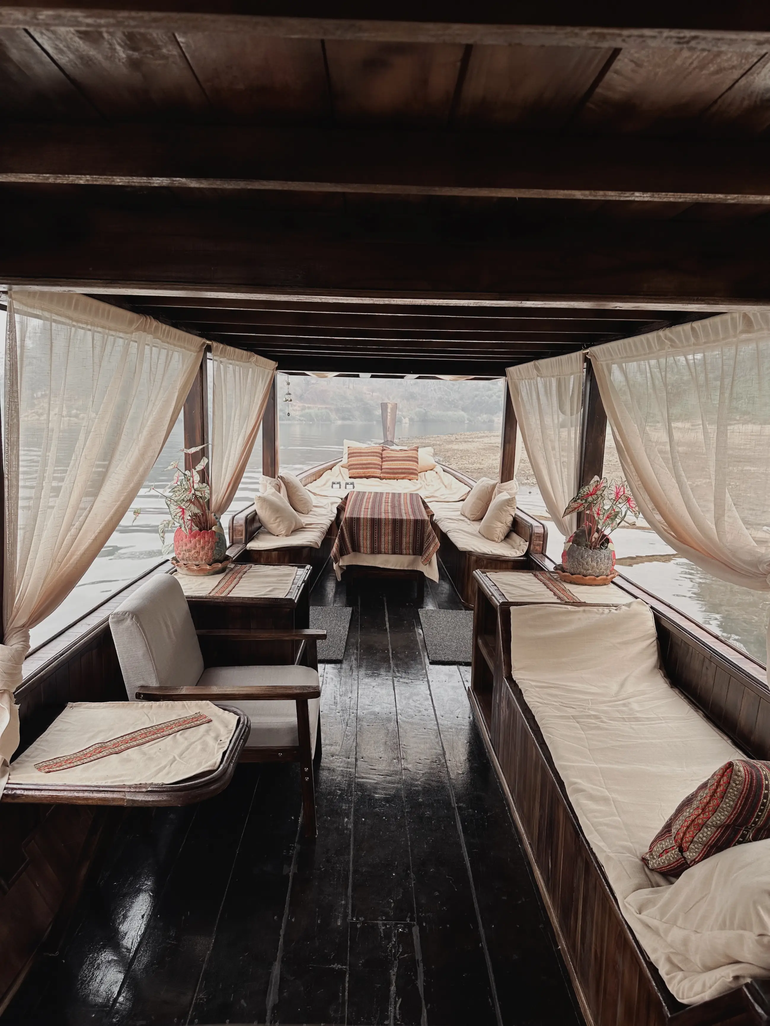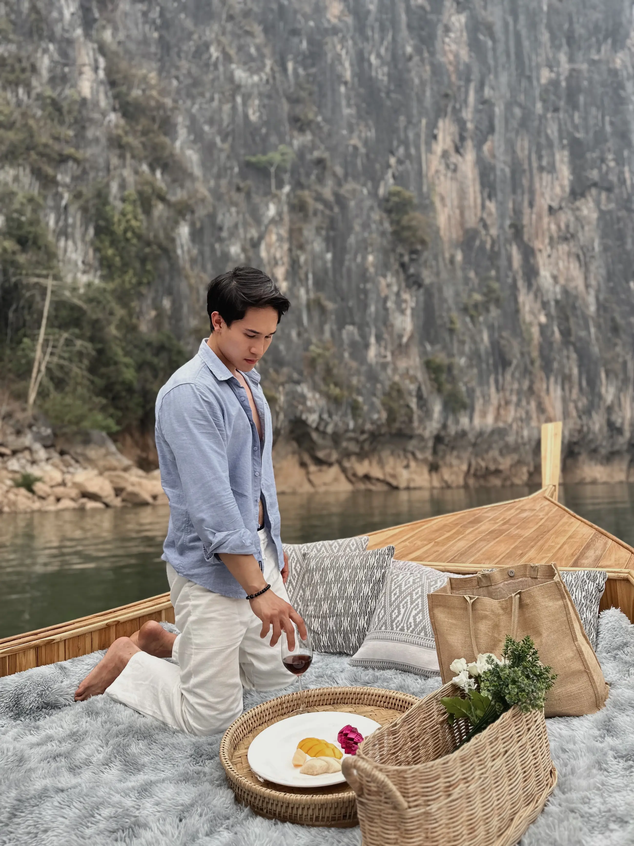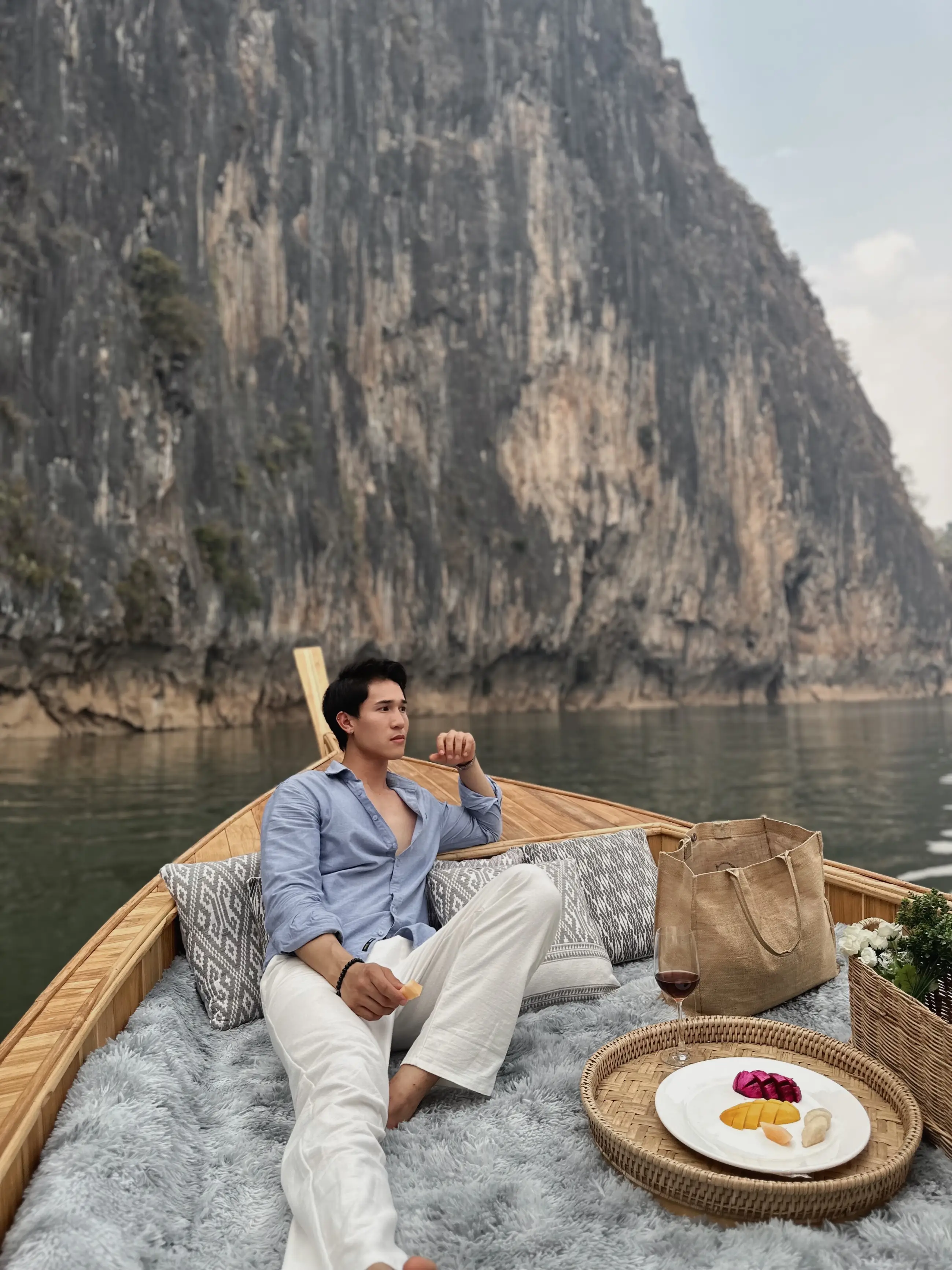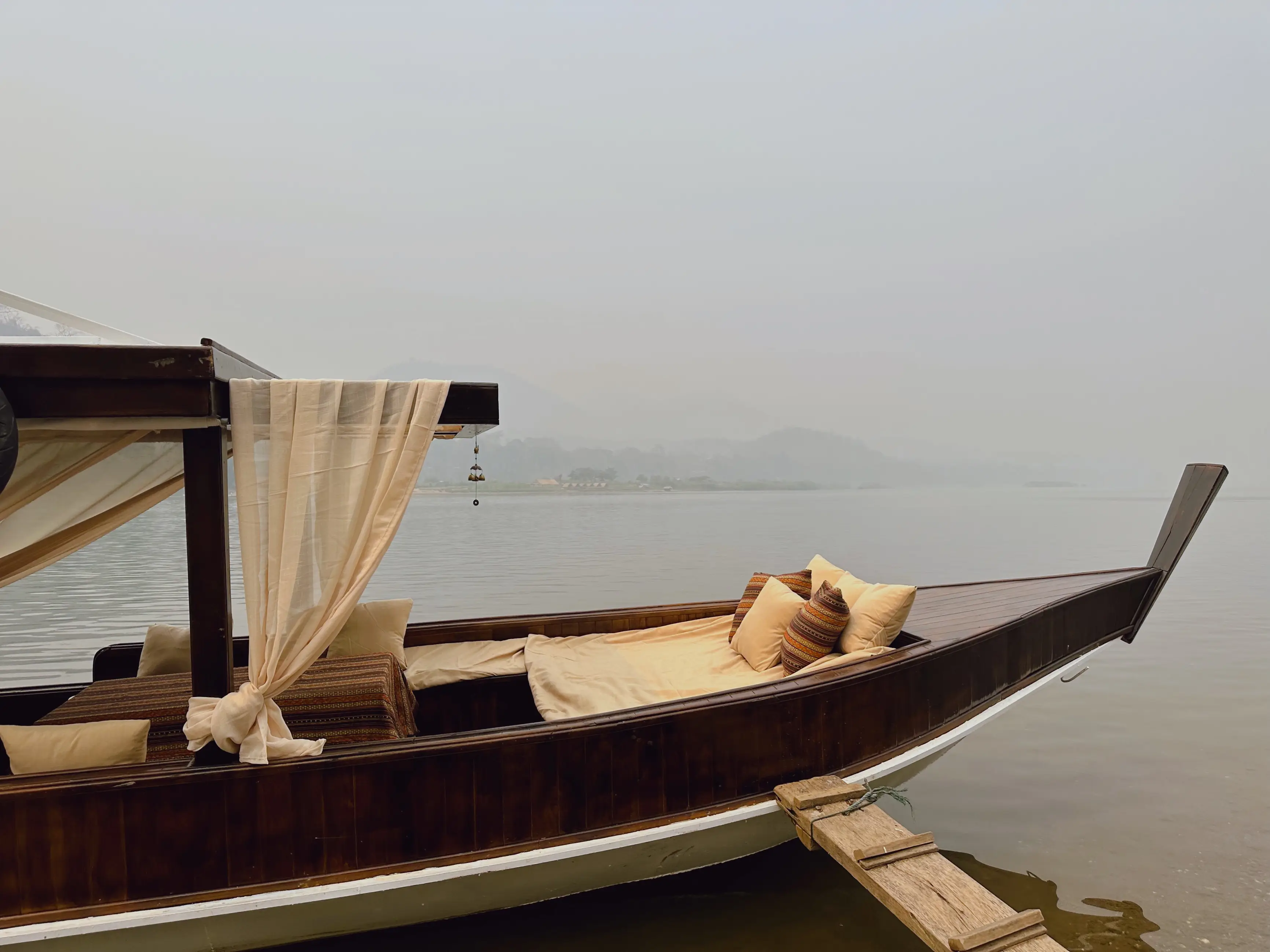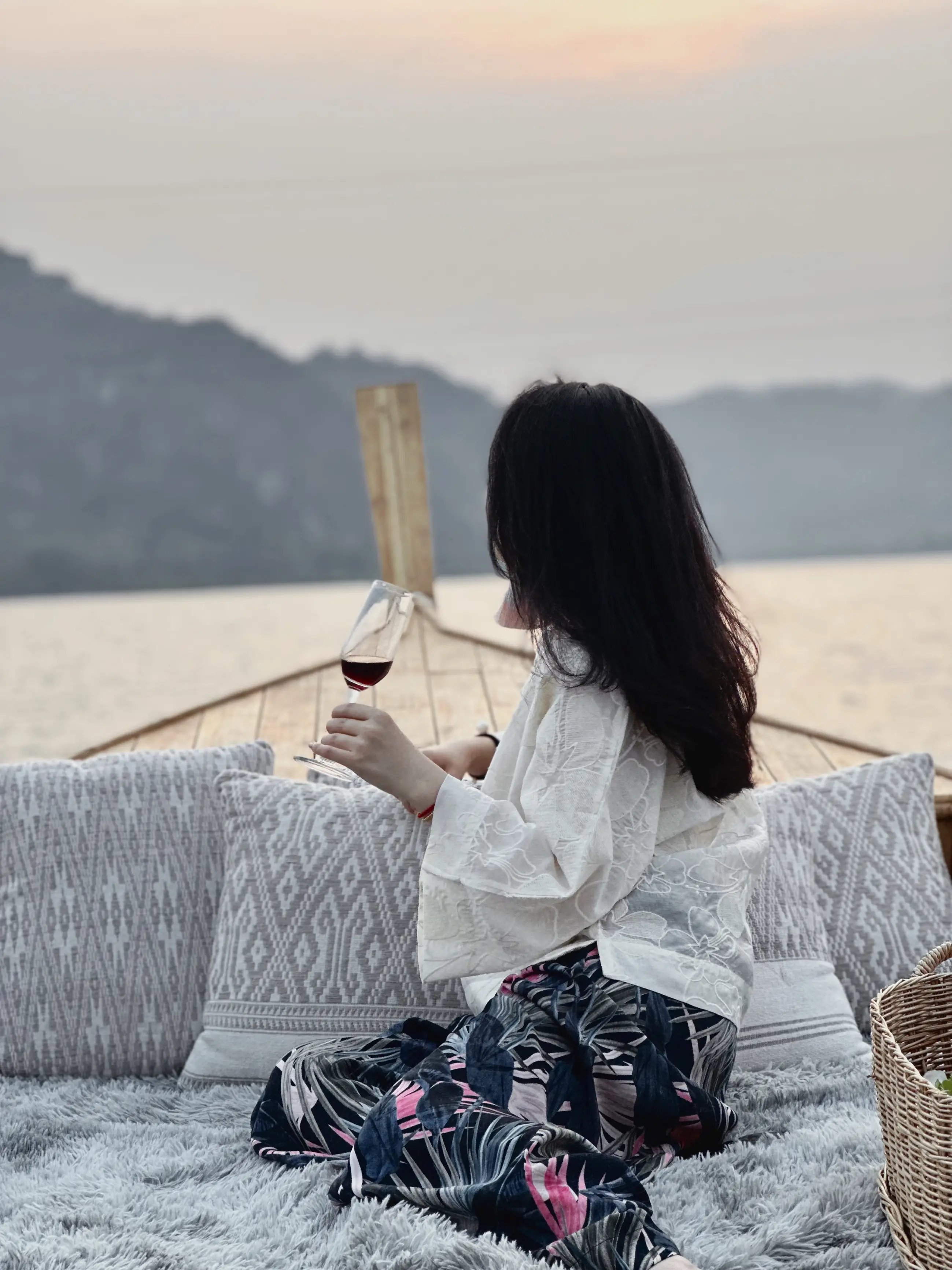 Enjoy a slow boat trip on the private Classic Yacht to visit Pak Ou cave
