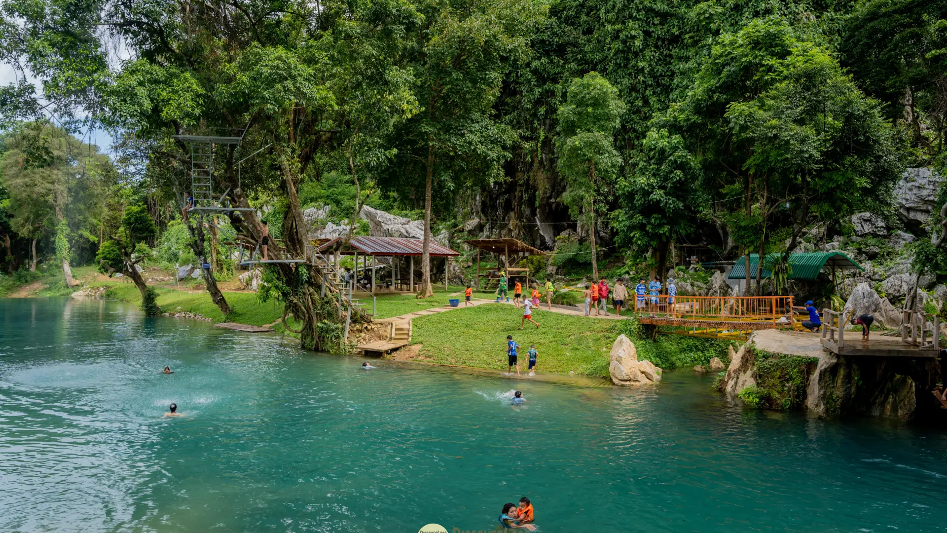 Years later during the colonial era, the local returned to cultivating the nearby fields and would bathe in the cave’s basin, where the water was so cold they said it could freeze your legs to a firm stiffness. Then they adjusted the cave’s name to Tham Jung, which mean “unable to move”, leaving locals no choice but to “hang around”.