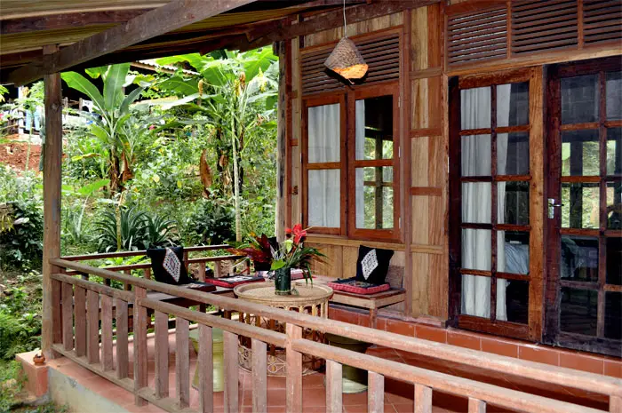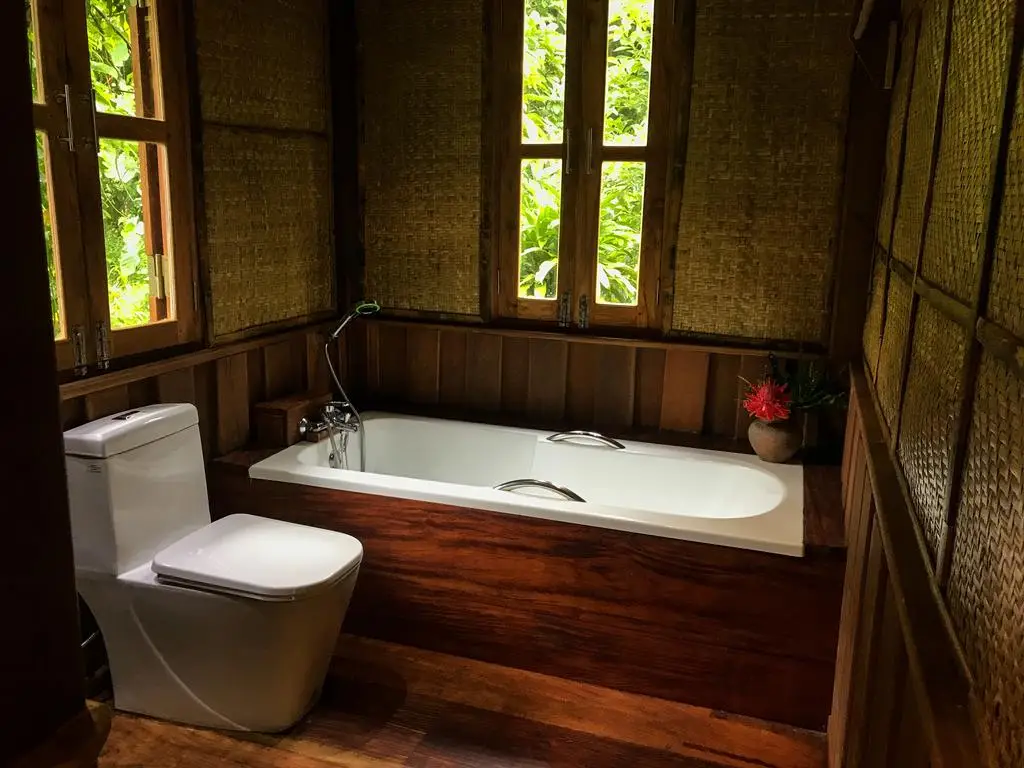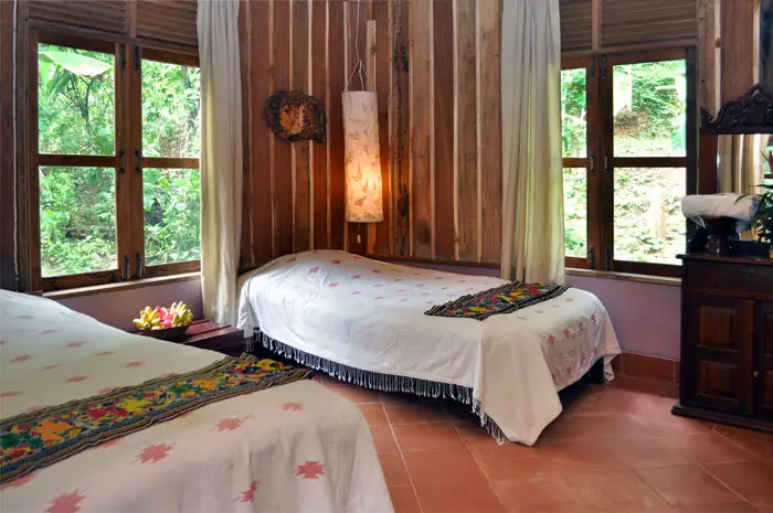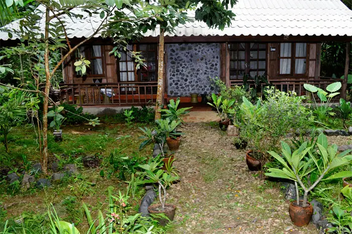 The lodge offers 3 comfortable Garden Cottages located in the biological garden; a family room in a traditional Laos house on wooden poles, overlooking the waterfall, and about four budget rooms.