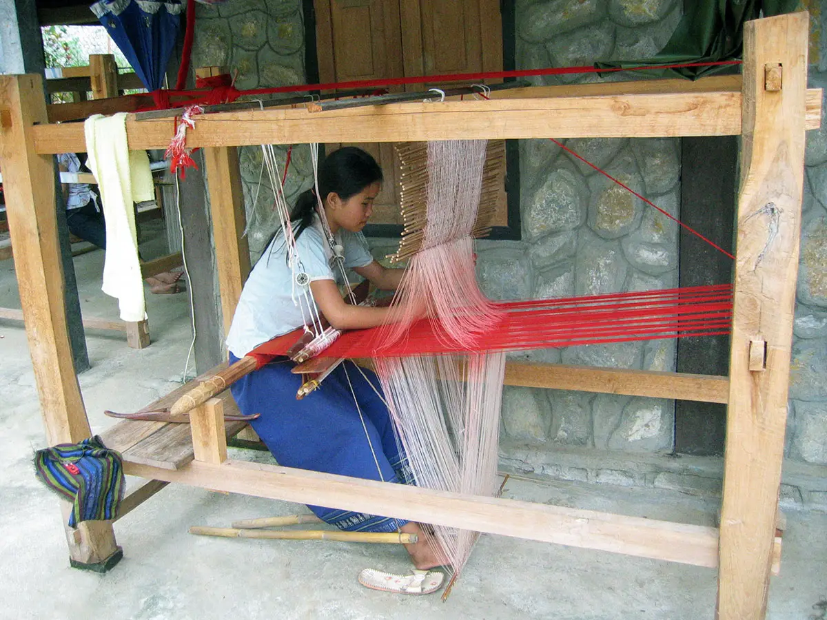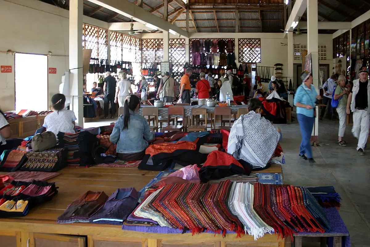 Ban Phanom is similar to the villages of Luang Namtha and Sam Neua, as you can observe the (mostly female) artisans working on their looms, dyeing and then weaving the textiles with intricate patterns. Ban Phanom was the village of choice for royal textiles, with each reigning monarch continuing to use village weavers as their preferred suppliers.
