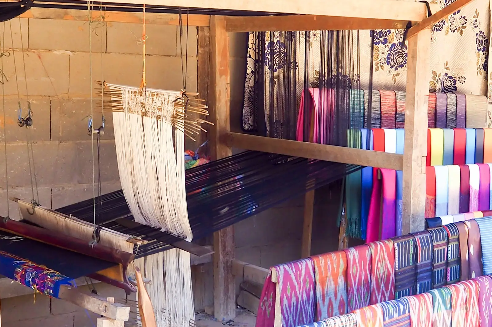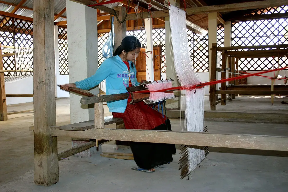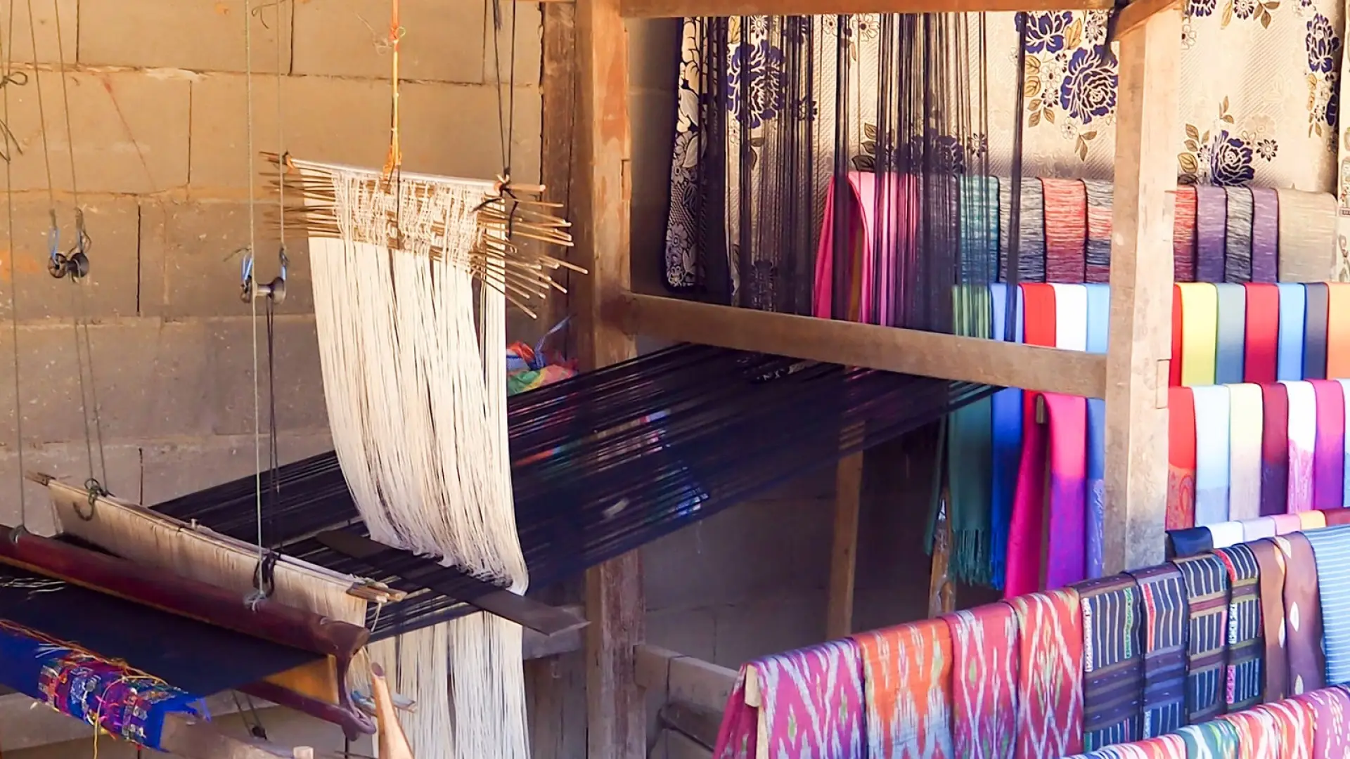 Ban Phanom is an artisan village near Phon Phau Temple in Luang Prabang. The villagers practise traditional textile making to provide goods for sale at Luang Prabang’s markets. The woven products are made with cotton and silk materials, together with intertwined threads to produce a shimmering effect.