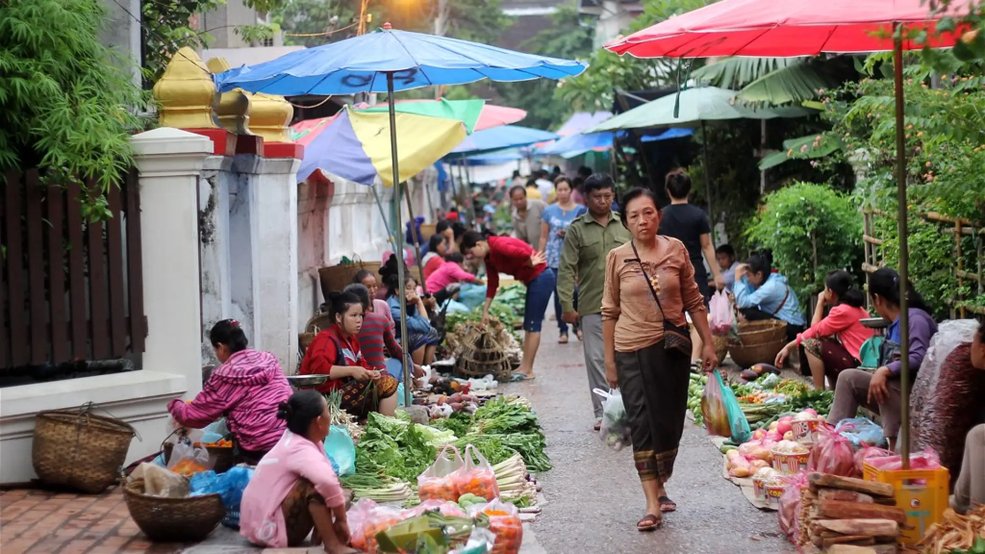 หากต้องการค้นหาวัตถุดิบที่สดใหม่ของประเทศลาว มุ่งหน้าไปสู่ตลาดแห่งนี้เป็นที่แรกในตอนเช้าสิ ที่นี่ชาวบ้านต่างพากันไปซื้อผักปลา สมุนไพรต่าง ๆ ไข่ ผลไม้สด รวมถึงเนื้อสัตว์ต่างๆหลากหลายชนิด ตลาดเช้าเป็นตลาดกลางแจ้งที่มีพ่อค้าแม่ค้าส่วนใหญ่จะขายสินค้าของพวกเขาเองใต้ร่มขนาดใหญ่ นี่เป็นสถานที่ที่เหมาะจะซื้อ ไคแผ่น (สาหร่ายแม่น้ำ) เนื้อควายแห้ง กล้วยและหน่อไม้ทอด ถึงแม้ว่าคุณจะไม่สนใจซื้ออะไร แต่มันก็คุ้มค่าที่จะไปเยี่ยมชมเพื่อถ่ายรูปสิ่งแปลก ๆ และน่าอัศจรรย์