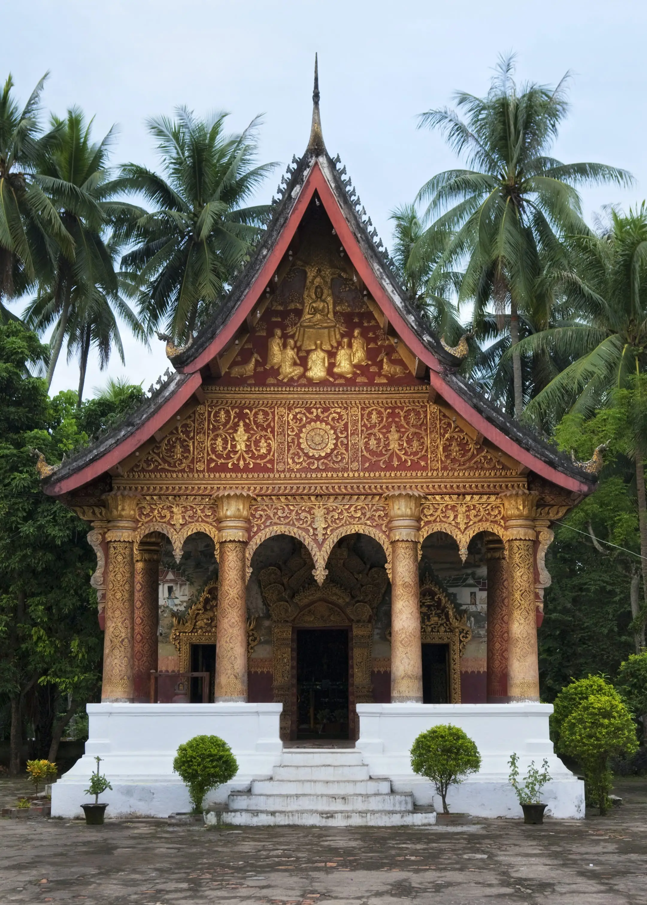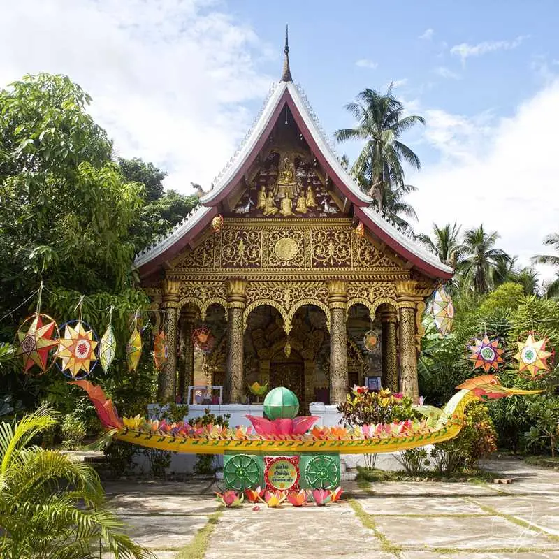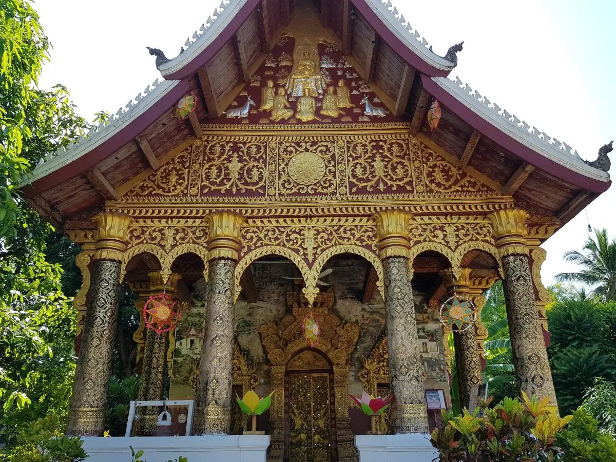 สิมของวัด (หอประชุม) เป็นหนึ่งในวัดหลวงพระบางที่สร้างขึ้นในแบบหลวงพระบางแบบที่ 3 ซึ่งได้รับการจัดประเภทโดย UNESCO ลักษณะเด่นของรูปแบบนี้ ได้แก่ การใช้เสาที่มีความสูงเท่ากันกับภายนอกอาคาร การไม่มีเสาภายใน การรวมเฉลียง และการวางตำแหน่งขององค์พระประธานชิดผนังด้านหลังโดยไม่มีซุ้มประตูด้านหลัง