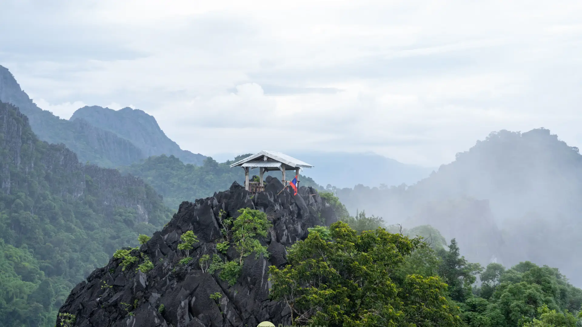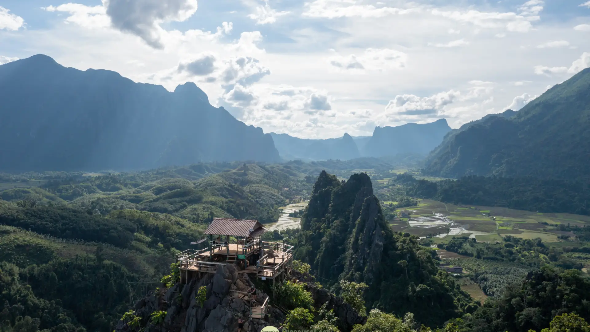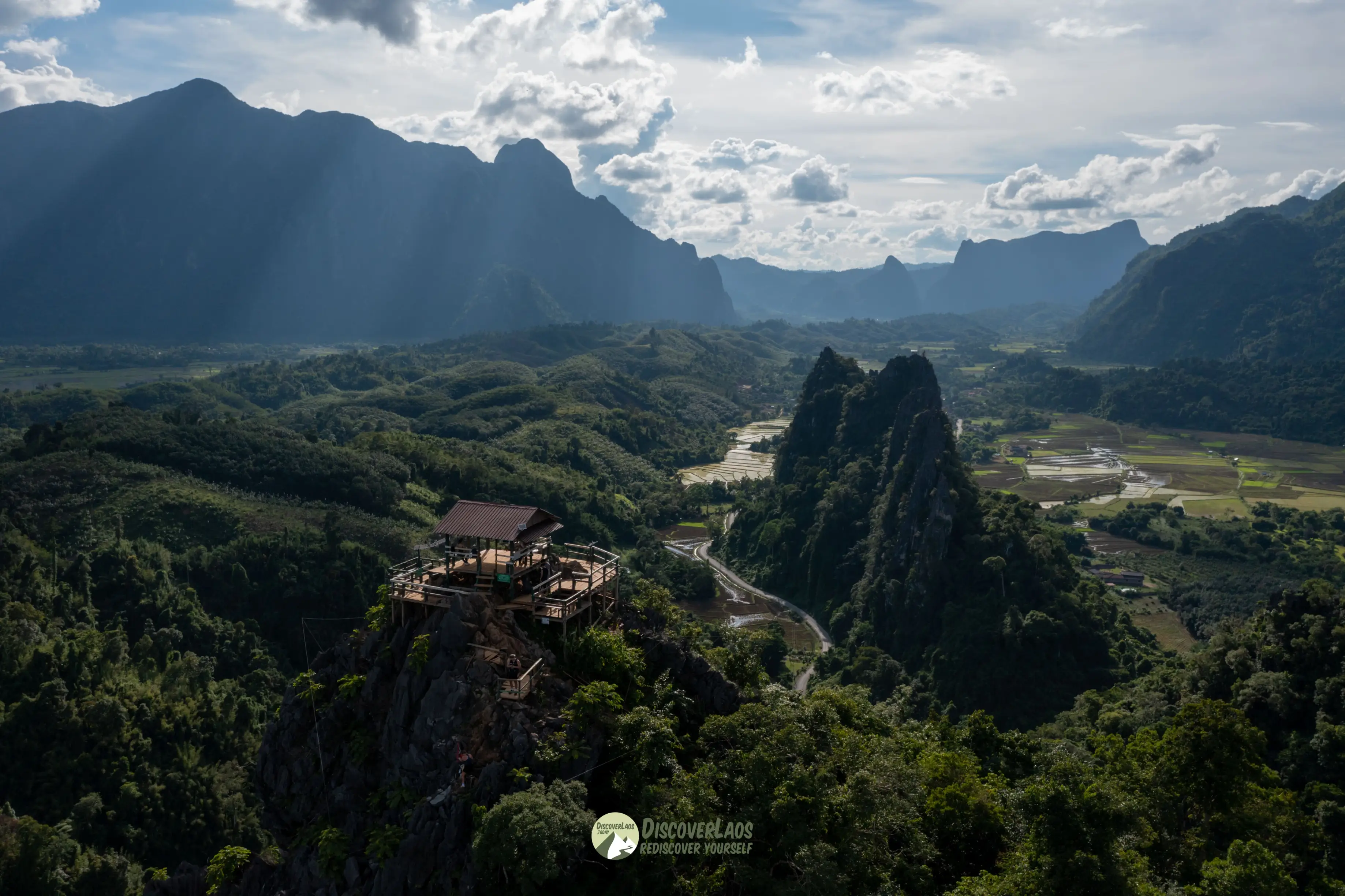 ในบรรดาสิ่งมหัศจรรย์ทางธรณีวิทยาของวังเวียงที่งดงาม ผาเงิน (Silver Cliff) สูงขึ้น 250 เมตร และสามารถมองเห็นทิวทัศน์อันงดงามของวังเวียงจากบนยอดหินสีเงิน หน้าผากว้าง 2 กิโลเมตร มองลงมาที่ป่าทุ่งนาและหมู่บ้านด้านล่างได้ รวมทั้งข้ามหุบเขาไปยังภูเขาผาบัวแต่ต้องปีนขึ้นไปอีกเล็กน้อย