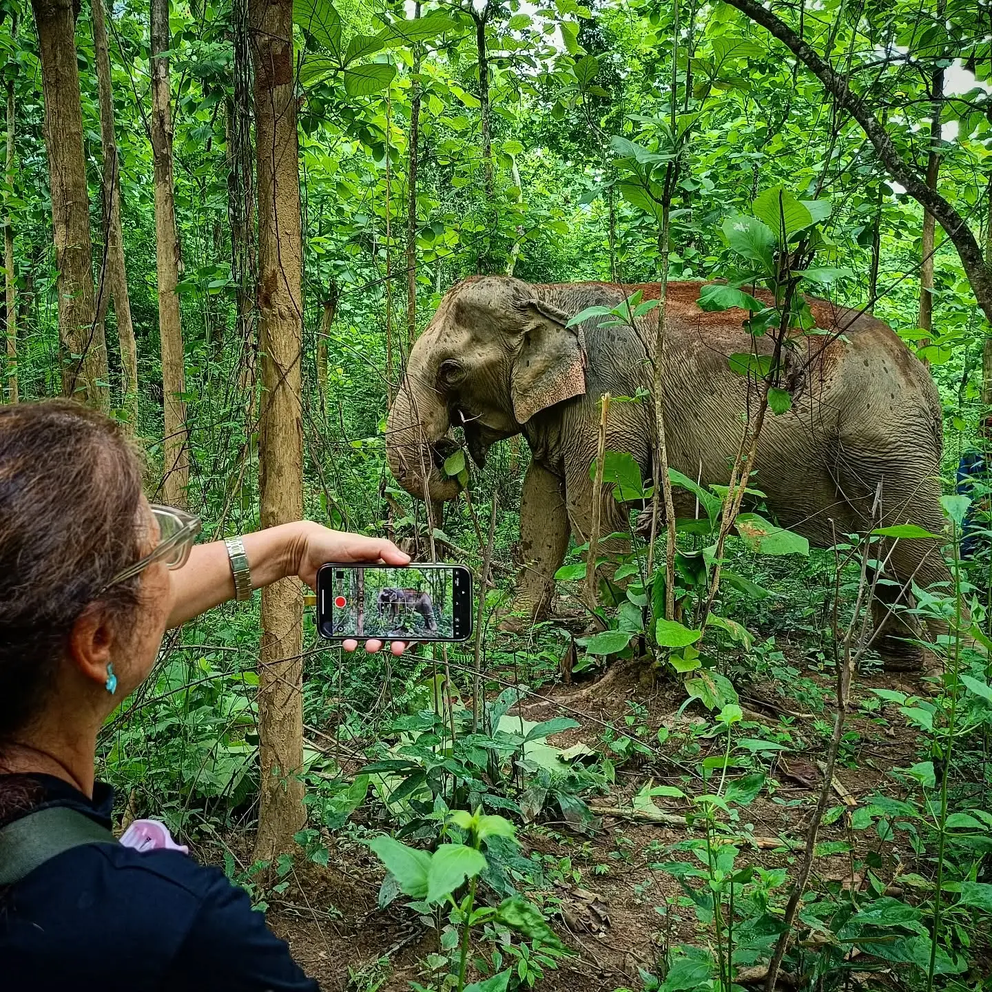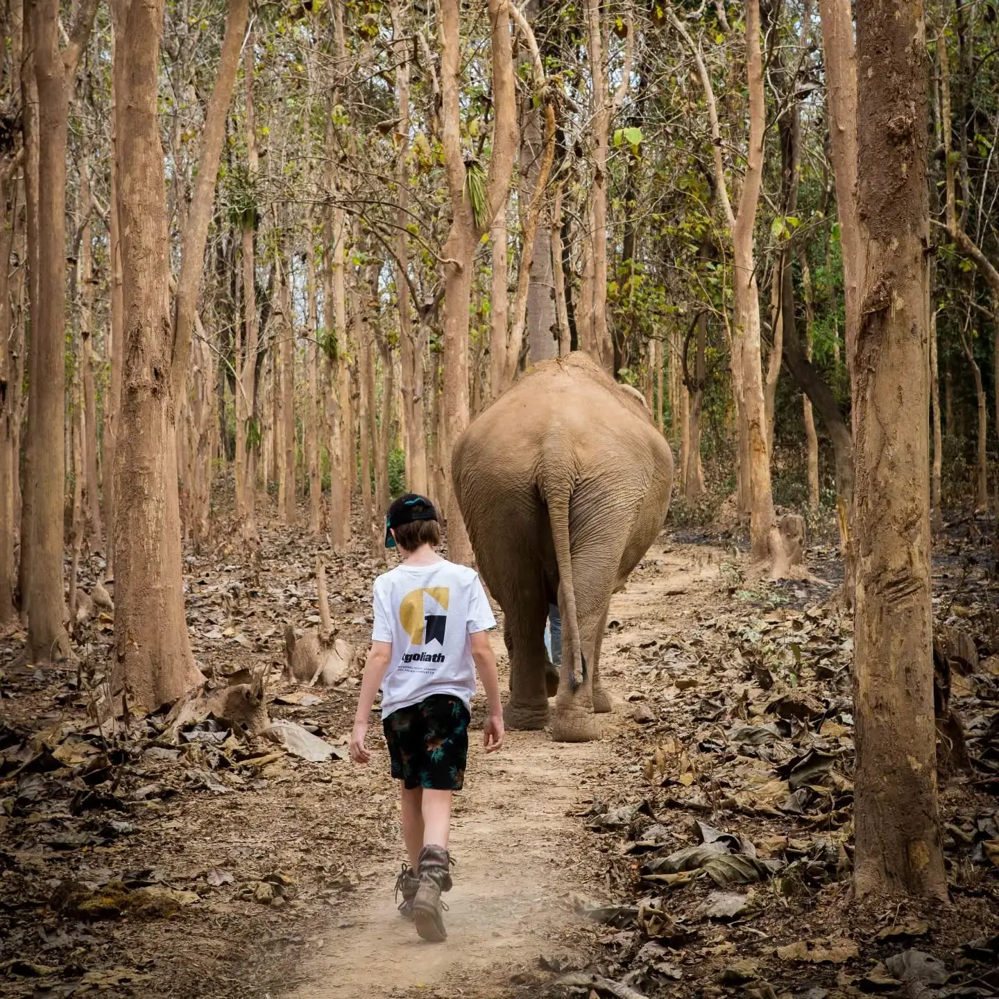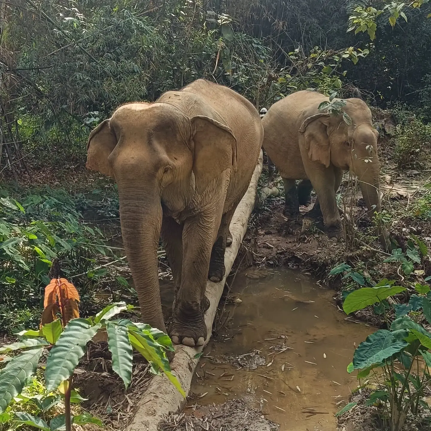 Enjoy a gentle 1 km jungle walk alongside elephants (easy & flexible)