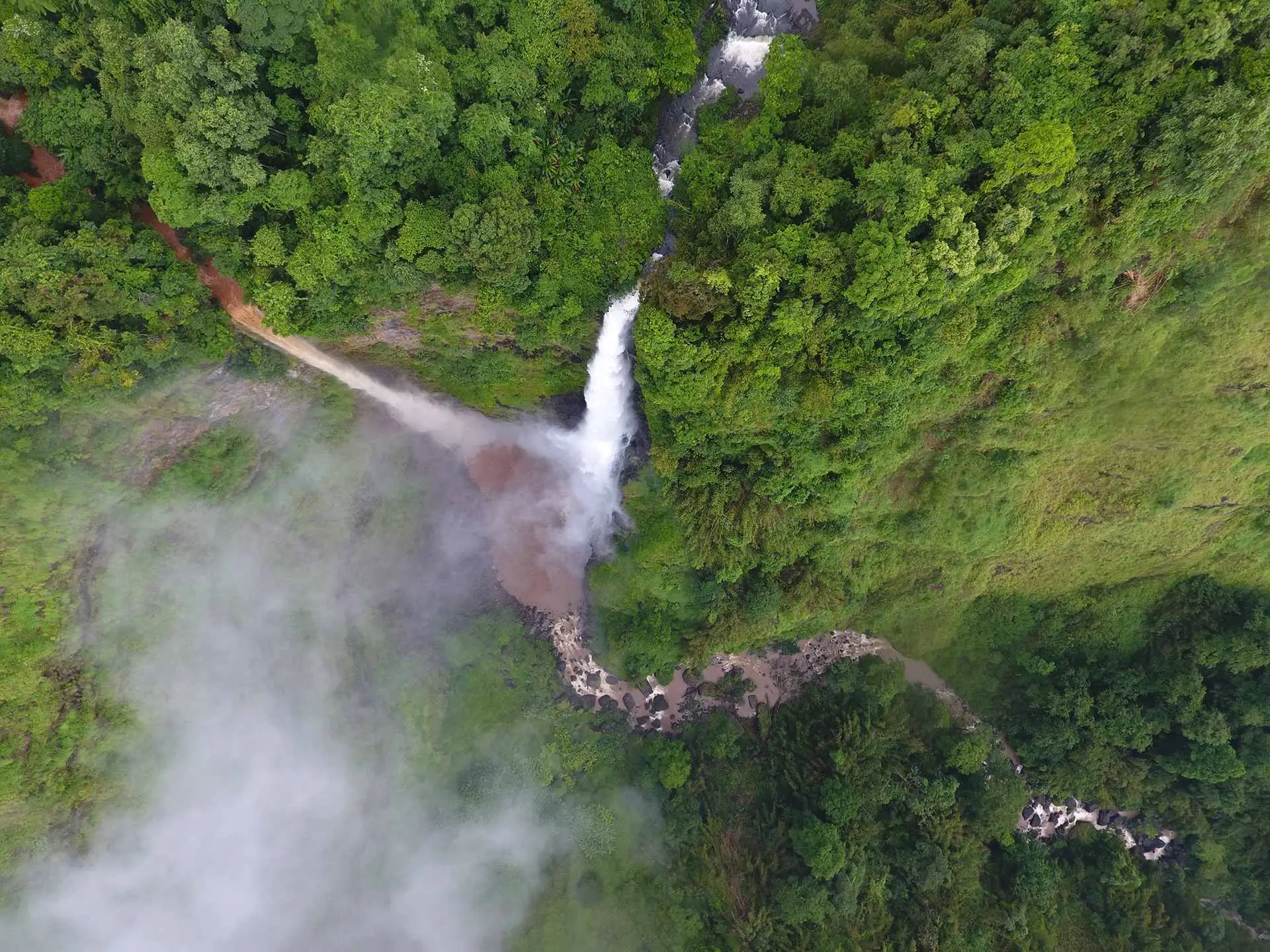 Fly high up in the air as you view the Tad Fane Waterfall in all its magnificent glory