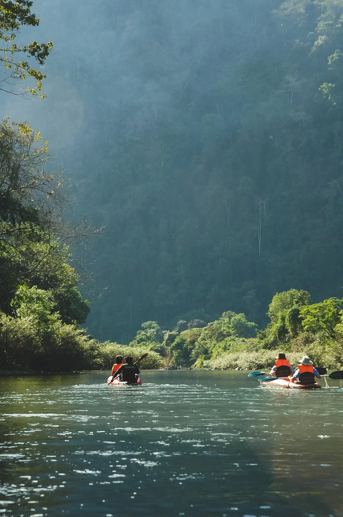 Continuing the adventure, arrive at Tham Nam (Water Cave), where a refreshing natural spring pool awaits. Take a dip in the cool, crystal-clear waters—perfect for swimming and unwinding after your cave exploration.
