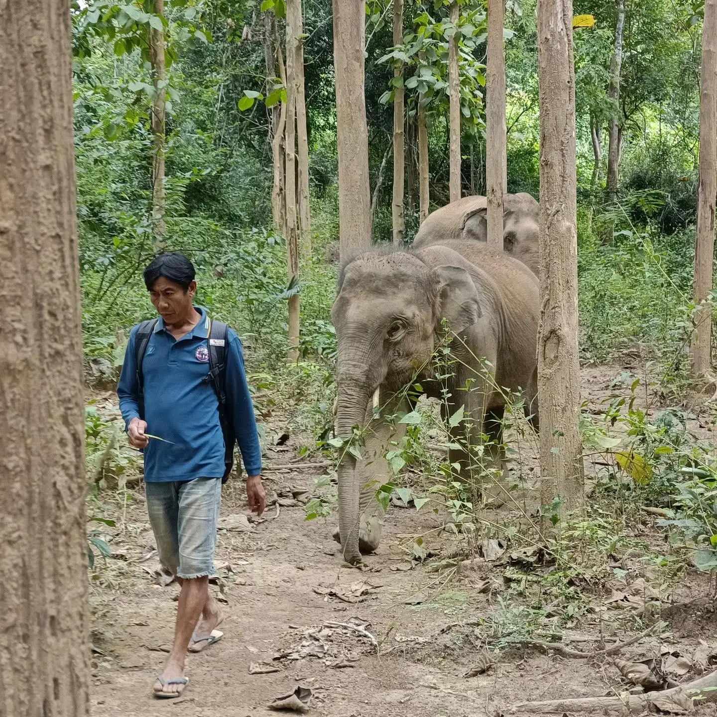 Experience a guided jungle trek alongside elephants (2.5 km, easy & shaded)